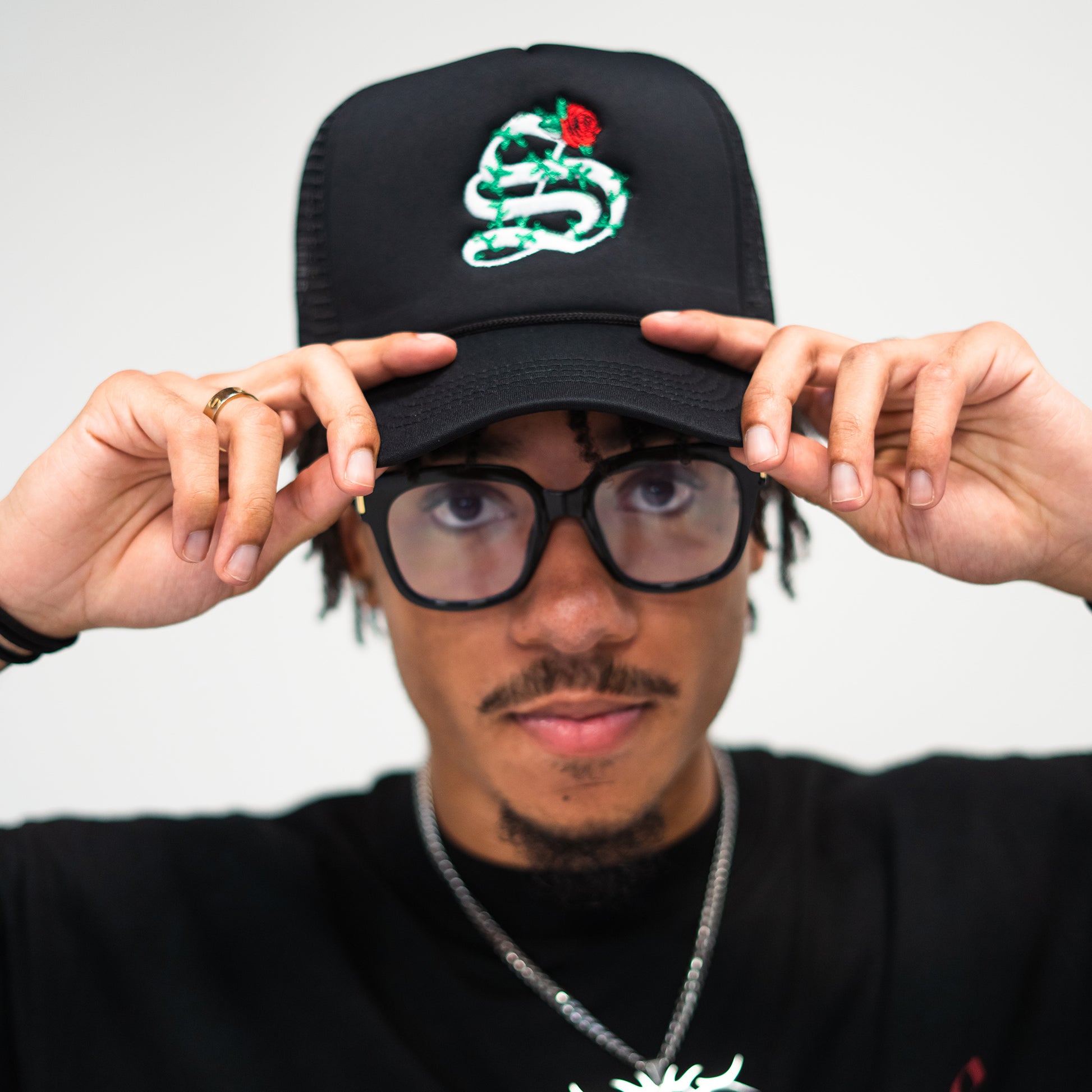 The highlight of this trucker hat is the striking original logo, prominently displayed on the front. With its sleek black design, it pairs seamlessly with any outfit while adding a unique touch to your style.