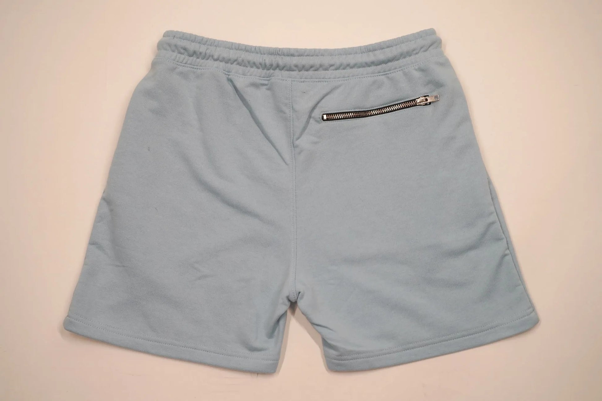 Hand-cut and crafted with care, our custom Baby Blue Shorts features sets of zippers on each garment. Great for an easy comfortable relaxed fit for summer nights.
